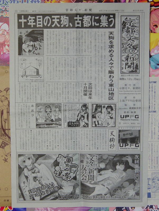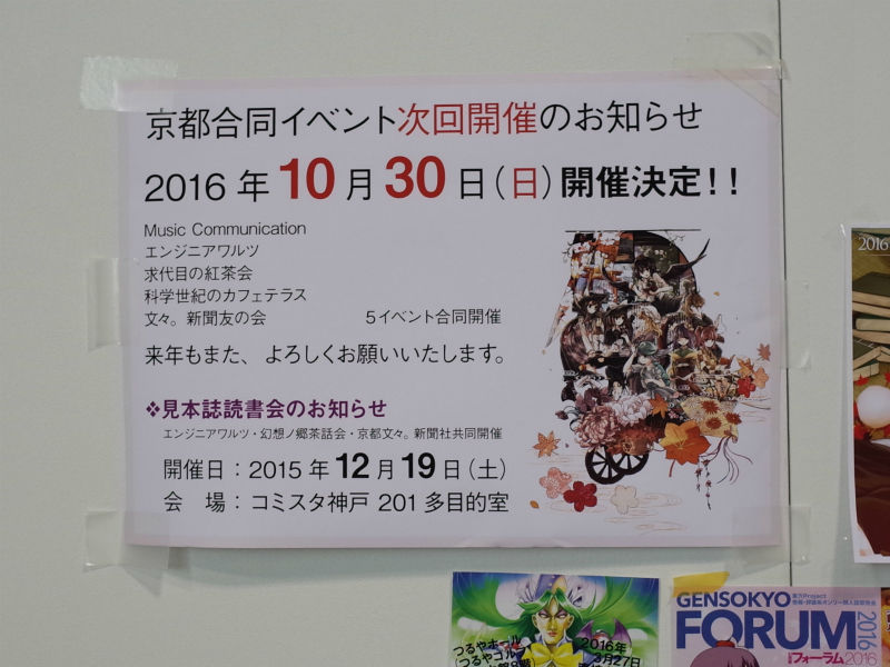 サークルスペースで新聞を読んでいると、来年の京都合同は10月30日に開催されるとの一節が。2016年の京都合同も今から楽しみですね!(まだ2015年のが開場になってもいない)