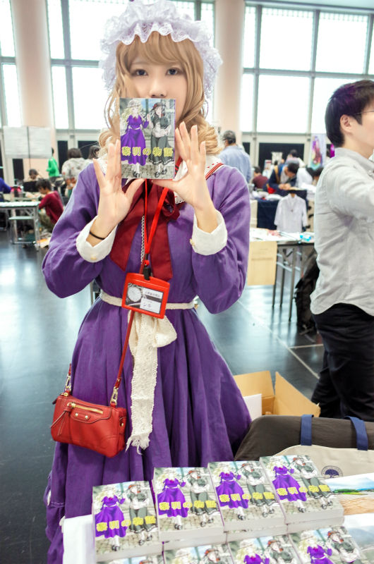 こちらが、今回、売り子をお願いしたコスプレイヤーのシキさんです。コスはマエリベリー=ハーン。今年の「境界から視えた外界」では蓮子でお手伝いして下さった方ですね。また、Twitterを見て下さっている方にとっては、よくお見かけする方なのではないでしょうか。