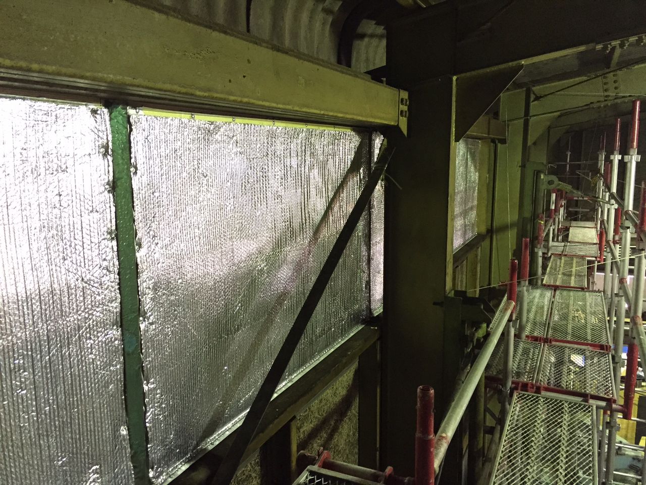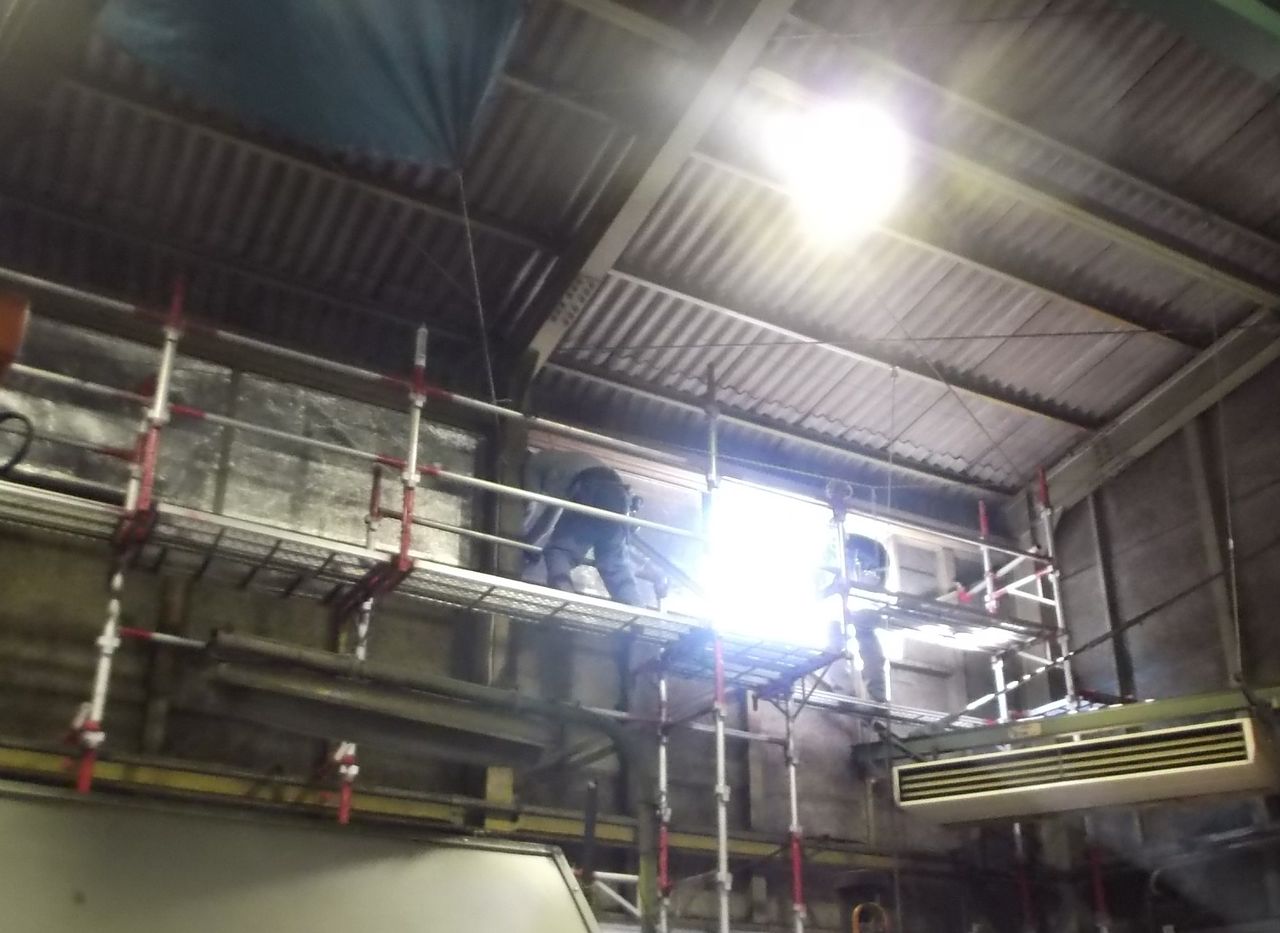 工場の中に足場を設置し中からの作業で工事をすすめました