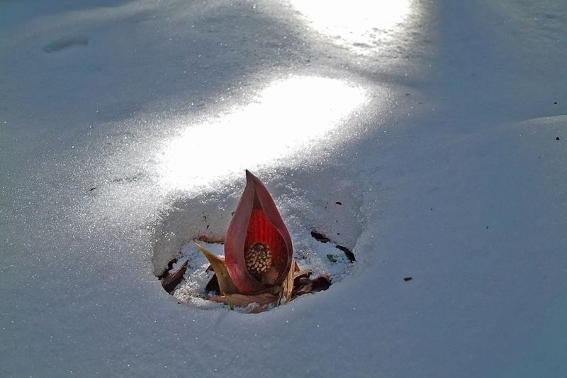 Photo:雪を融かして開花したザゼンソウの花 ~PhotoAC(Mトトロさん)