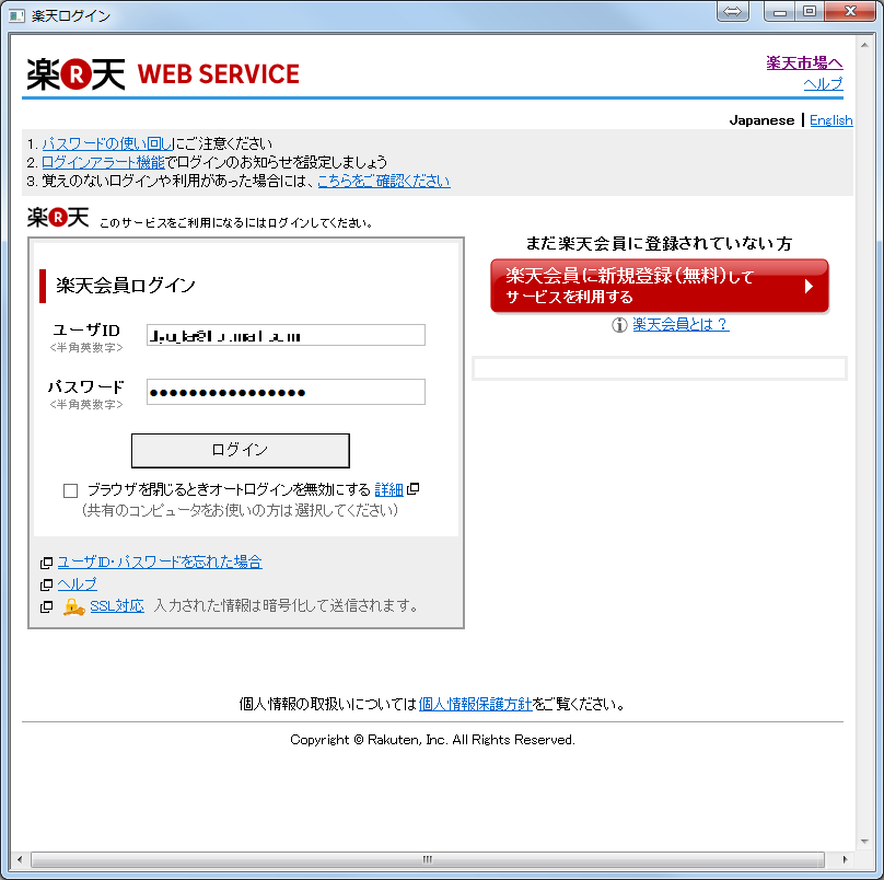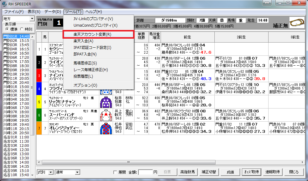2015年08月19日 楽天投票を別アカウントで行う方法 楽天投票を別アカウントで行いたい場合、「ツール」メニューから楽天アカウント変更を選択します。楽天のログイン画面が出ますので、ログインしたいアカウントの情報を入力してログインします。 「RH SPEEDERソフトマニュアル」カテゴリの最新記事 < 前の記事次の記事 > コメント コメントフォーム 名前 コメント 評価する リセット リセット 顔 星 投稿する 情報を記憶