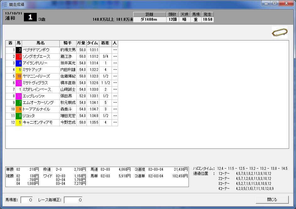 独自にスピード指数を研究されている方は、画面下部より馬場差、レース毎補正を入力、修正することが出来ます。全競馬場スピード指数研究会の無料配信している馬場差、レース補正値はレース終了後3日以内にダウンロードされます。既に馬場差、レース補正値入力、修正されている場合は上書き更新されることはありません。
