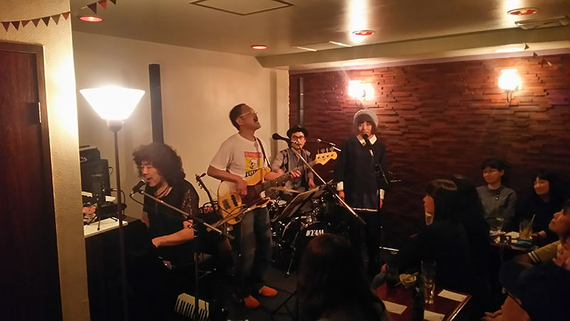 4/2。小さなカフェでありましたがおかげさまで満席。トークコーナー(エロゲ講座)を入れたりヘタクソな弾き語りに挑戦してみたりワンマンだからやりたい放題でした。こんなへなちょこバントを優しく見守って下さった会場の皆様どうもありがとう! 知恵と工夫と練習でまだまだ伸び盛り。これからもPINPONSをよろしく。5月もやりますよ!(撮影:スタッフ)