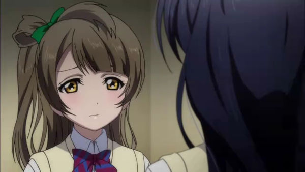 帰宅時、穂乃果に何か言おうとすることりですが、結局何も言えず。