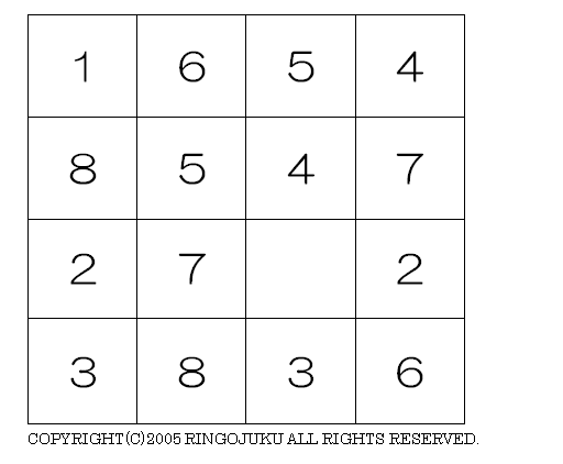 画像をクリックしてください。あいたマスに入る数を考えてください。