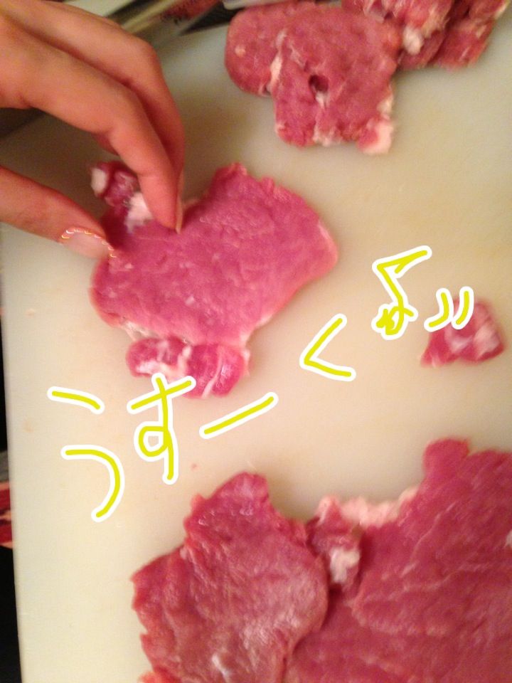 肉たたきで薄ーく伸ばします…