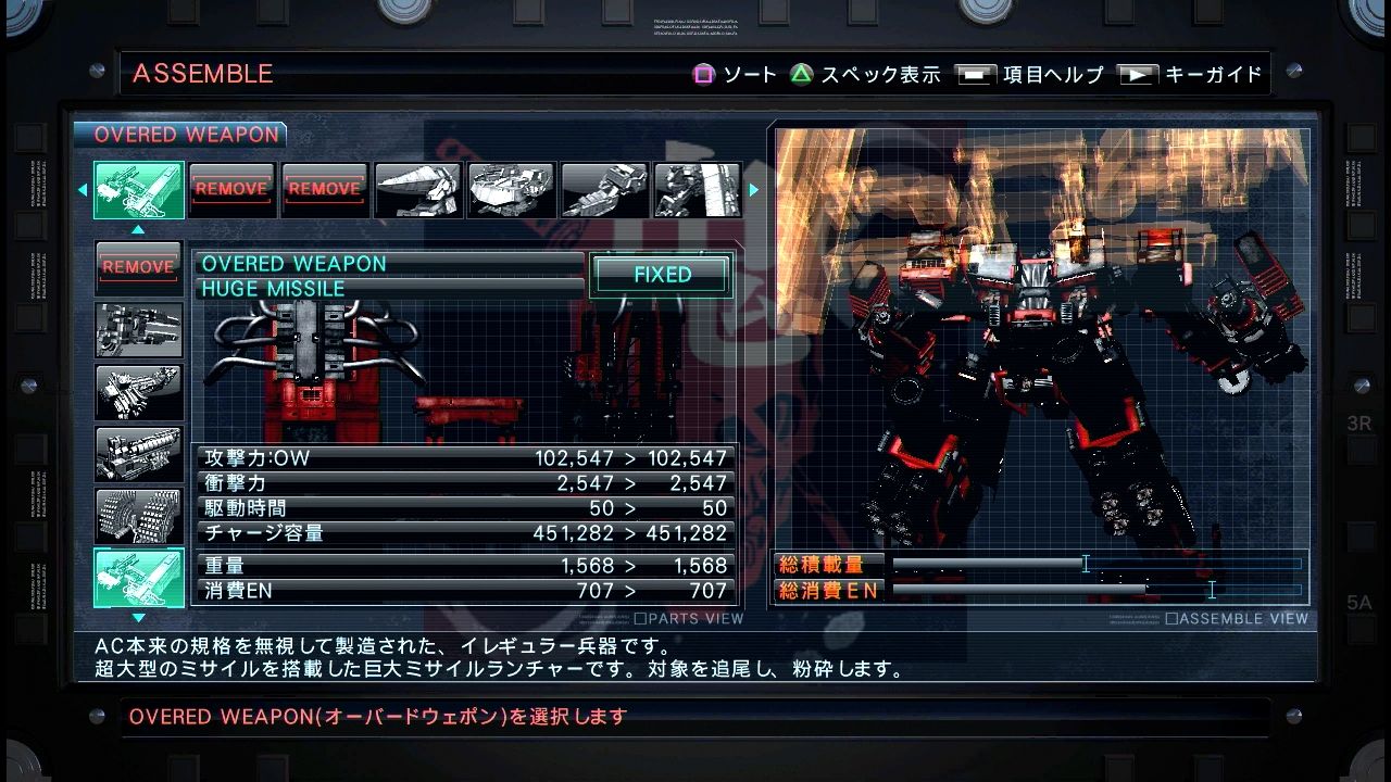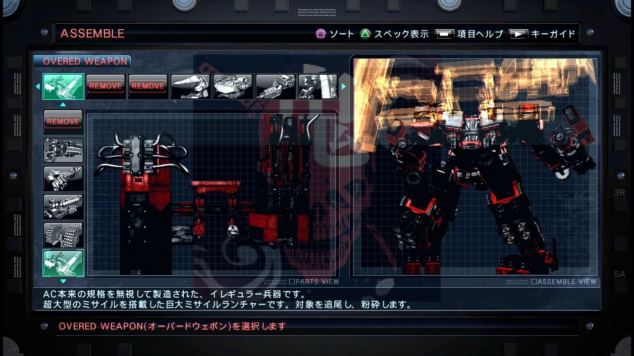 オプションは「コアパーツ」やら、「ガトリング」やら。