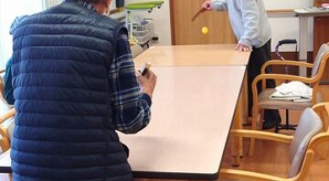 こちらの入居者様は、紙をおさえながら優しくアドバイス。