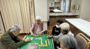 女性の入居者様も参戦して、レクリエーションが始まるまでの時間を楽しみました。