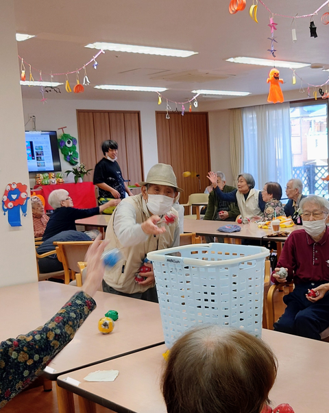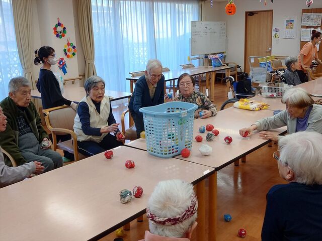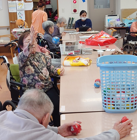 2025年12月09日 玉入れ 本日のレクリエーションは『玉入れ』をしま~す!2チームに分かれていざ勝負です。制限時間は2分。どちらのチームが多くのボールを入れることができるかな。「勝つぞ~!」とボールを持って、準備万端の入居者様。それでは、スタート‼ 2チームとも頑張って。1分経過。かごの中のボールも増えてきました。入らなかったボールも時間まで再度チャレンジOKです。試合終了。1回戦はこちらのチームが勝利しました。拍手で喜ぶ入居者様。スタッフも万歳~。🙌 🫛 事務員 〇尾 カテゴリなしの他の記事 ゴールを目指せ!🥅空き時間で