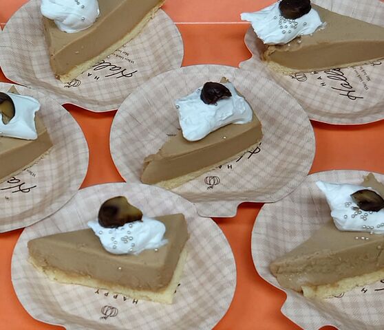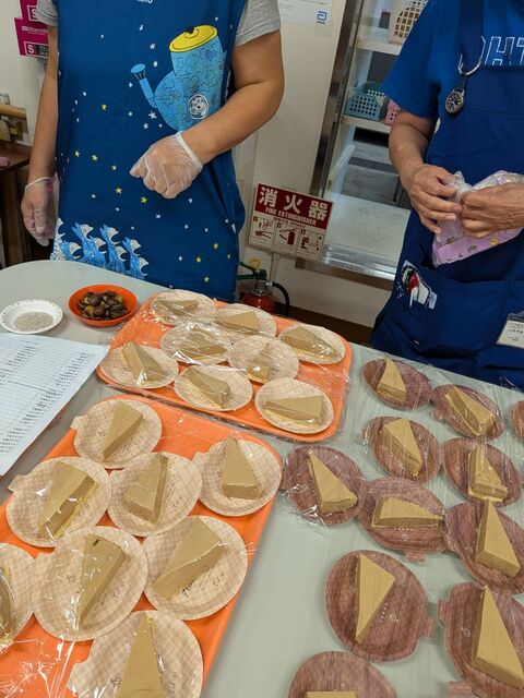 諸説ありますが、ハロウィーンの根源は収穫を祝うお祭りとされているとの事で、秋の味覚を堪能していただこうと、モンブランケーキをご用意し召し上がって頂きました。“モンブランケーキ”の声を耳にしたとたん皆様「イエーイ」と歓声を上げられ拍手が起こりました。