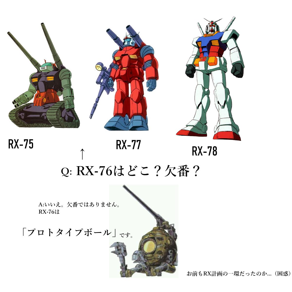 RX-75がガンタンクで77がガンキャノンで78がガンダム…って