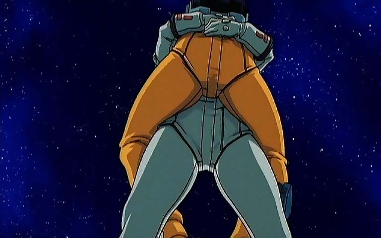戦闘が終わって装備を脱ぎ捨て駅弁スタイルで彼女と宇宙遊泳