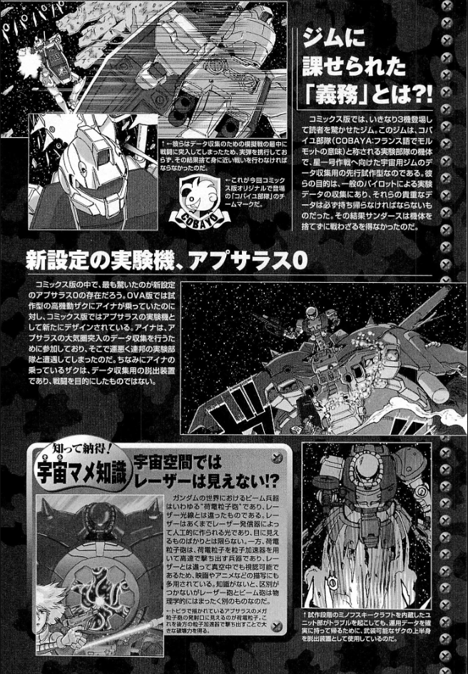 漫画版だとサンダースのいたジム部隊全滅させたのがザクが脱出装置になってるアプサラス0って事になった
