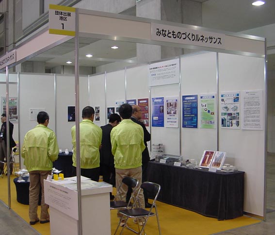 いつもお世話になっているみなとものづくりルネッサンスのブースでは、今回も板金やねじ、照明関係の展示があった。昨年ロボット製作でお世話になった板金屋さんは、ディズニーシーや八景島シーパラダイスのオブジェや有名歌手のマイクスタンドなど多彩な製品を製作されている。