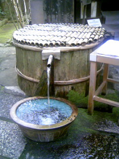 ここ、キンシ正宗堀野記念館の桃の井で水を補給。染井と水脈を同じとするこの井戸は、とてもまろやかでおいしいです。