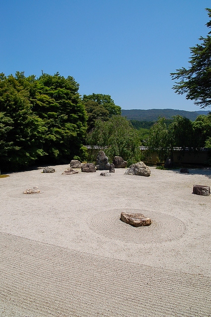 比叡山を借景とした、奥行きのある、広々とした石庭だ。