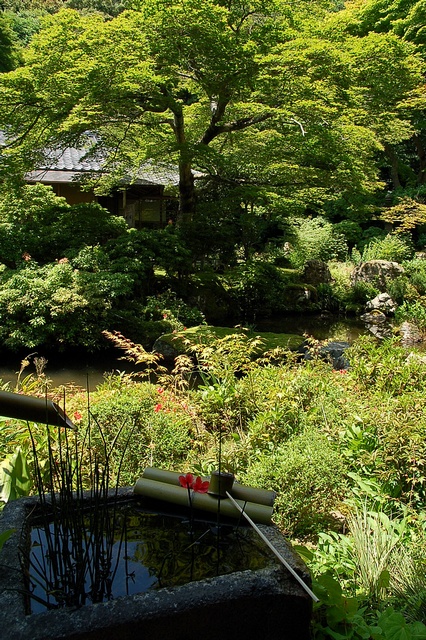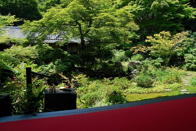 書院と客殿との間にある池泉回遊式庭園……といっても、庭には下りれないので、縁側から眺める。