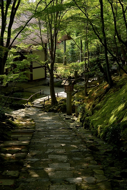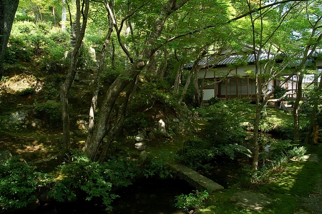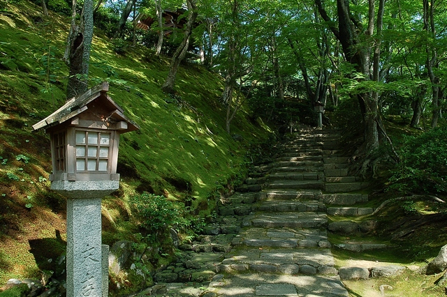 茅葺きの仁王門をくぐると、そこは、青々とした緑の中で、夏の木漏れ日と影がパッチワークを織り成す美しさだった。
