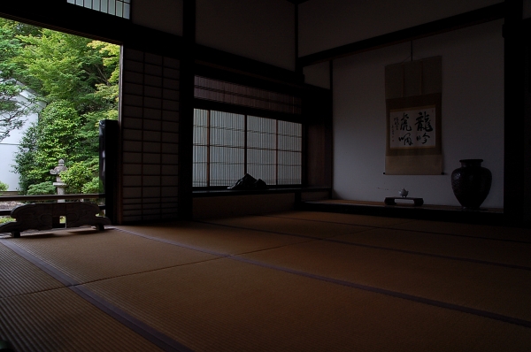 小方丈の廊下。この静謐な部屋の中に、狩野探幽が描いたとされる「群虎図」がある。