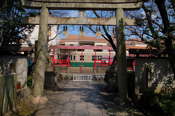 裏参道を出ると、すぐそこは嵐電の駅のホーム。