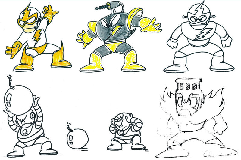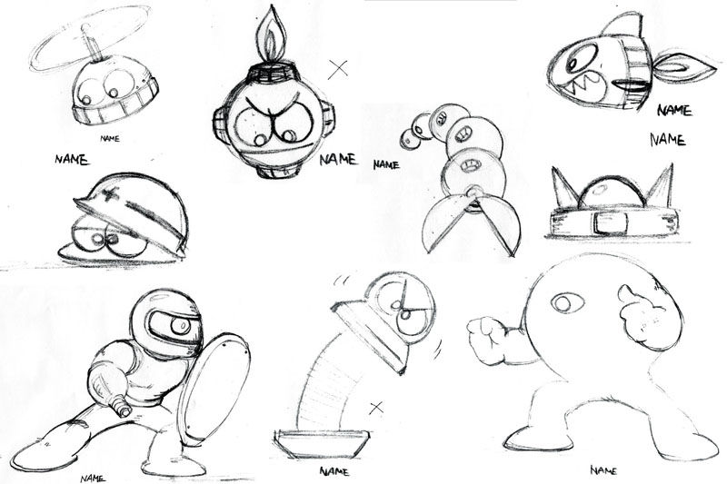 ▲各ボスの初期案。ここから何度も修正が加えられ、おなじみのボスキャラとして完成されていきます。