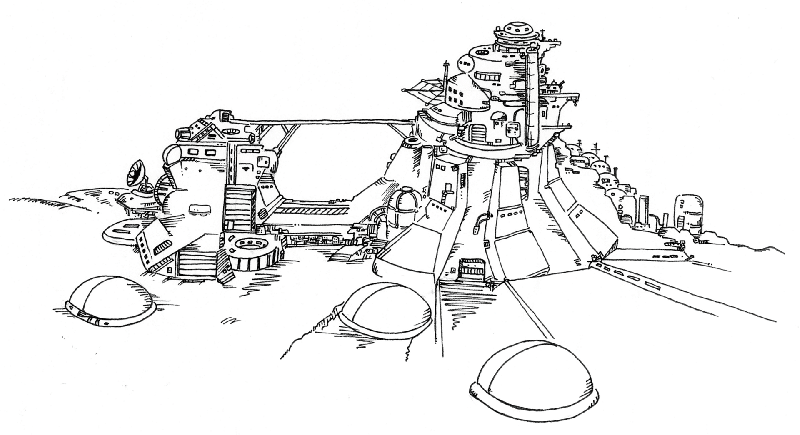 ▲背景デザインの一つである、ワイリー基地。最上部にはワイリーUFOらしきものが・・・。