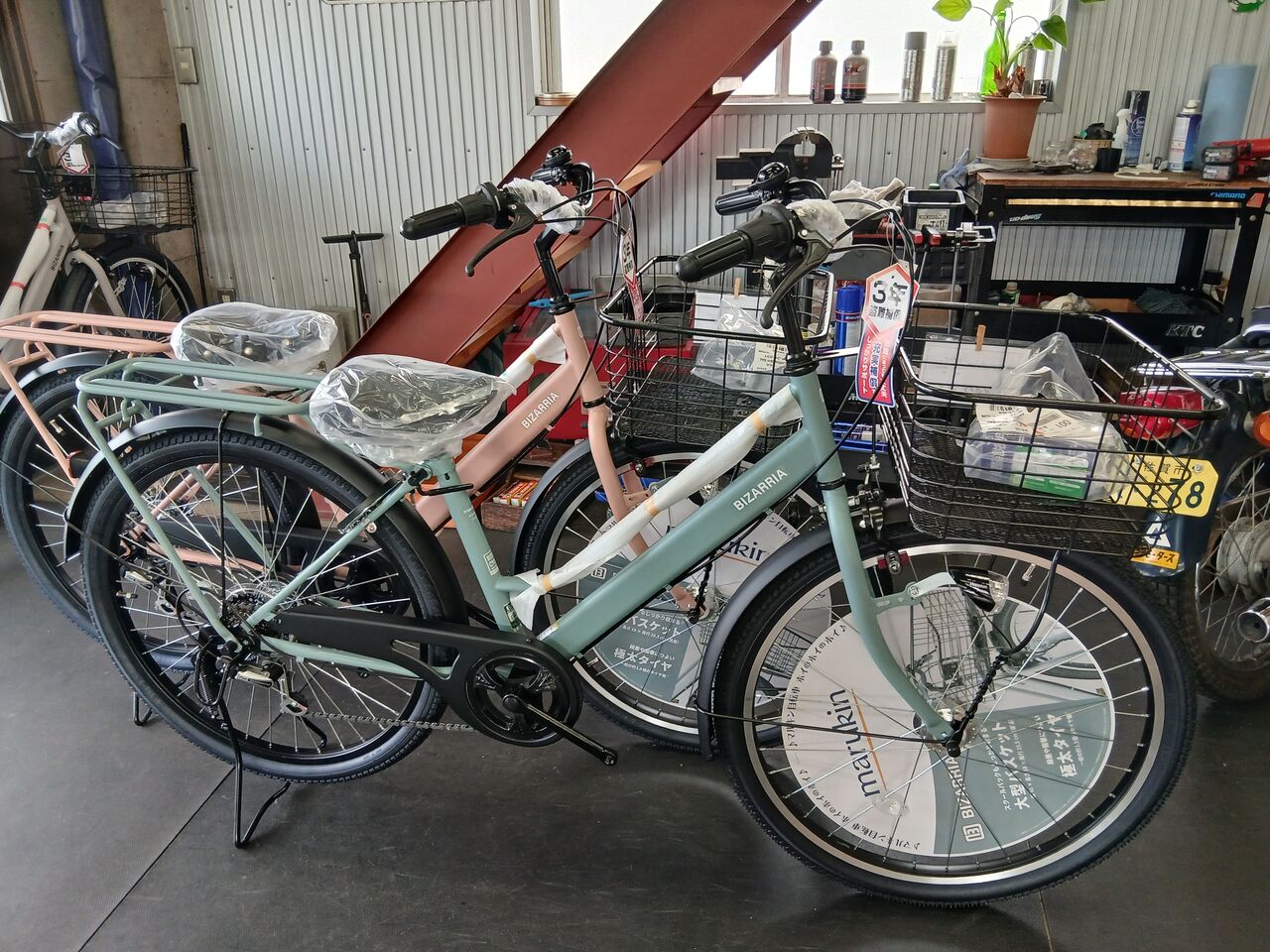 遊びのオートバイと仕事の自転車。