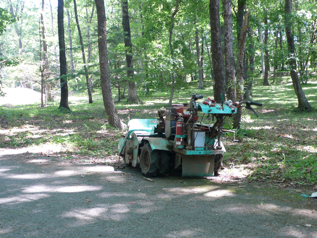 2018年07月02日 夏日和です! 今日のロマンドは、暑く、14時現在の気温は32度!暑いです! 事務所もさすがに、3.4日前からエアコンをつけ始めました今日から、ロマンド内では草刈が始まりました。暑い中お疲れ様です。おかげさまでキレイになりますこんな感じ↓草刈り前↓こんなマシンを使ってます花芽を付け始めた山百合を守ろうとこんな事をしました。草刈り前に、周りの草を刈る予定です。最初の頃は、山百合と間違えた植物です。実がなると違いに気づきました。