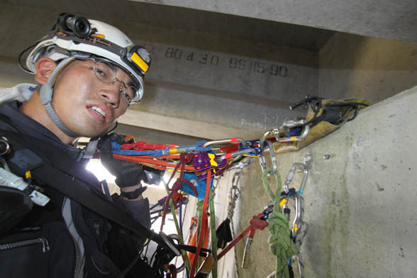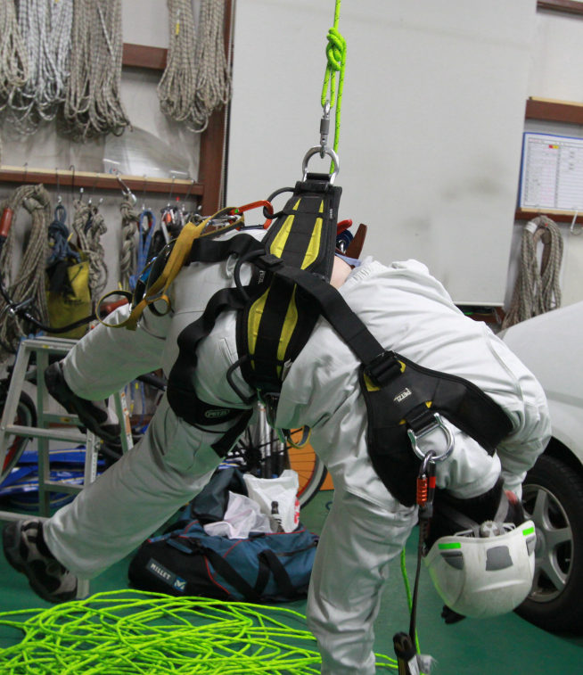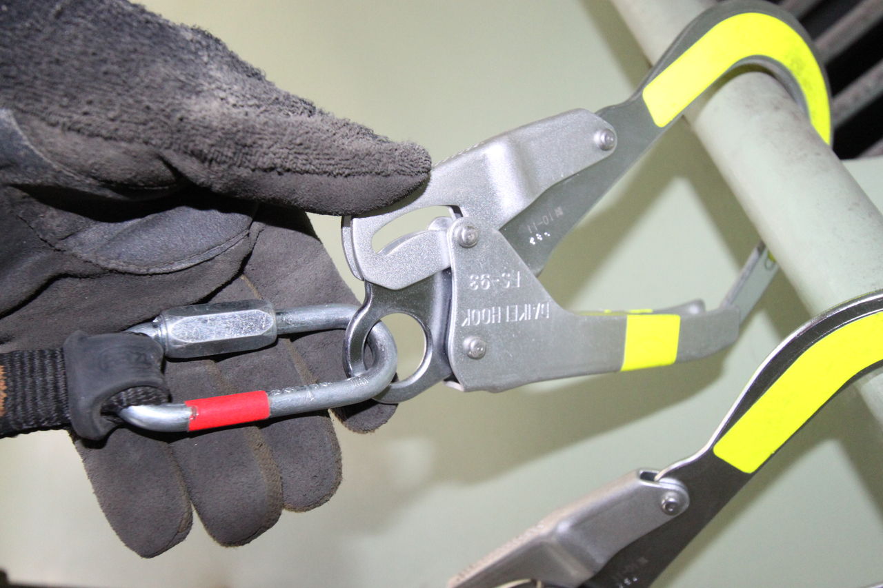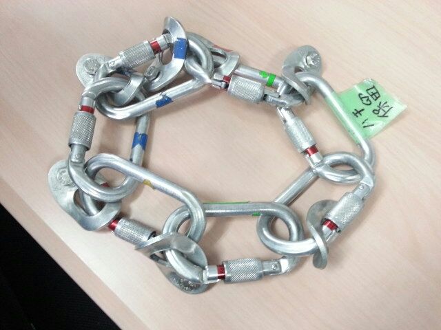 特殊高所技術では主にオーバル型(O型)の カラビナ、コネクターを使っています。