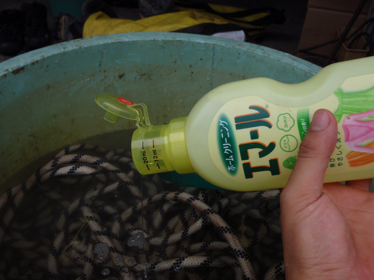 ロープはデリケートなので、花王のエマールのようなデリケート繊維をホームクリーニングするための手洗い用洗剤がお勧めです。洗浄後にロープが硬くなりにくいです。