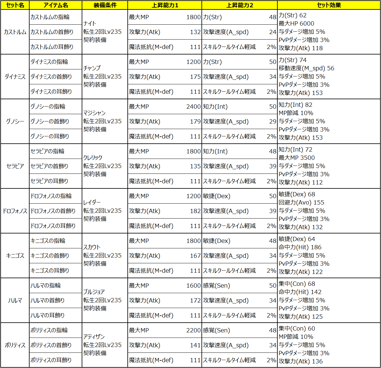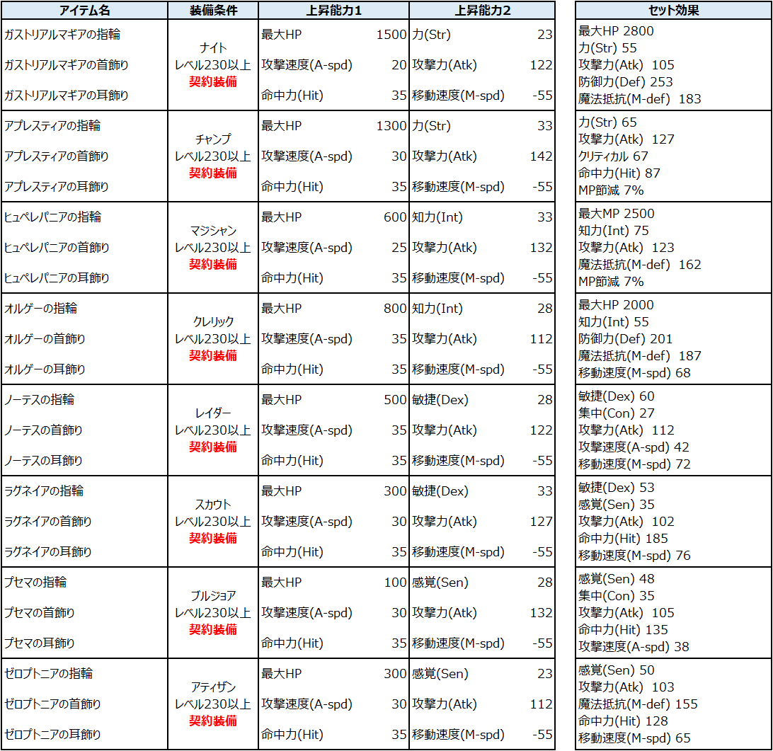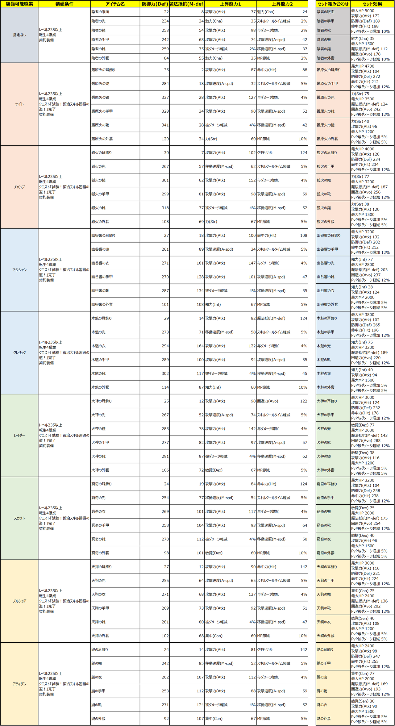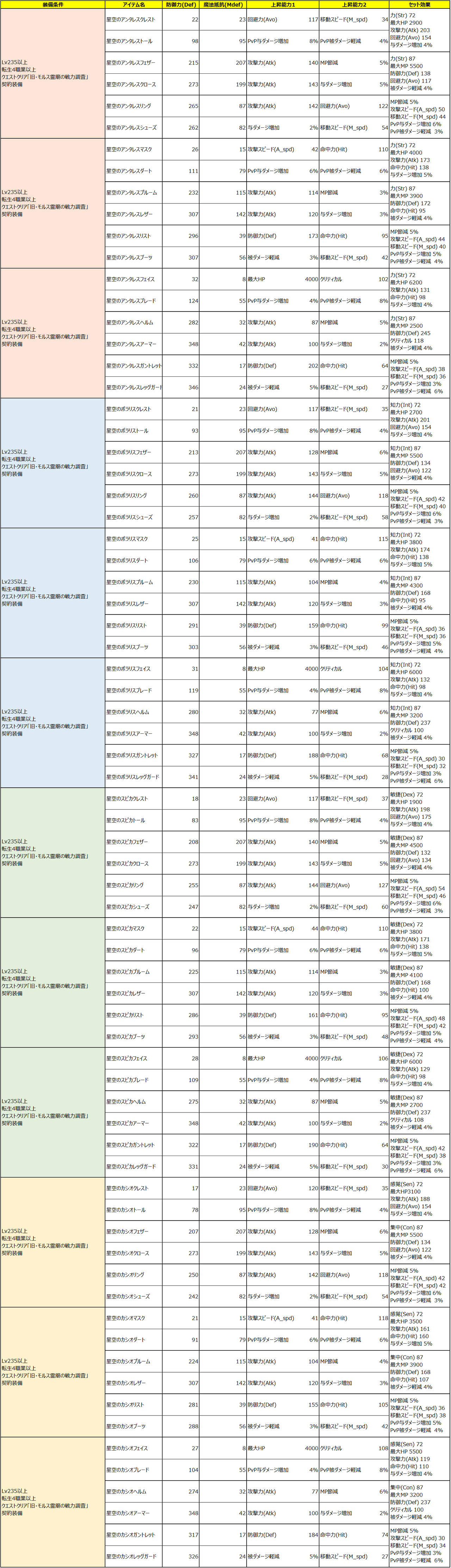 装備はすべて契約装備。装備条件Lv235(転生4職以上)
