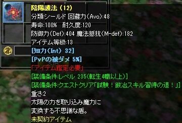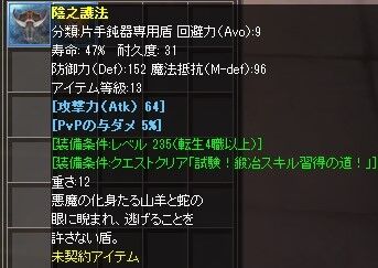 足:陰者の靴 メドゥーサの牙7 職業別の粉塵500 イビルキメラの核1(52%)