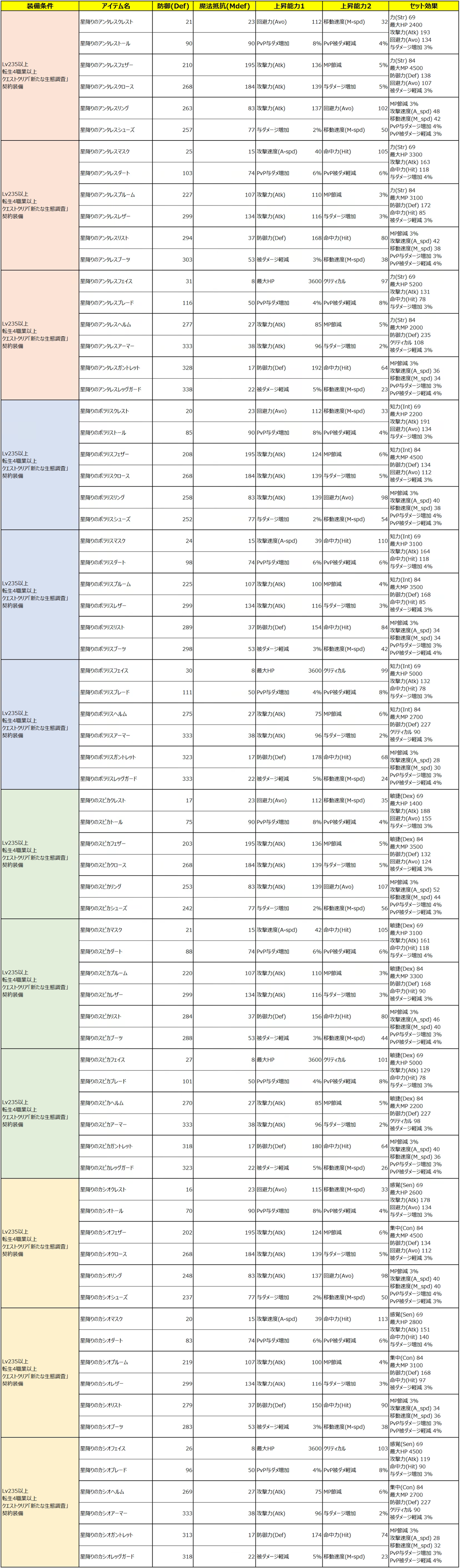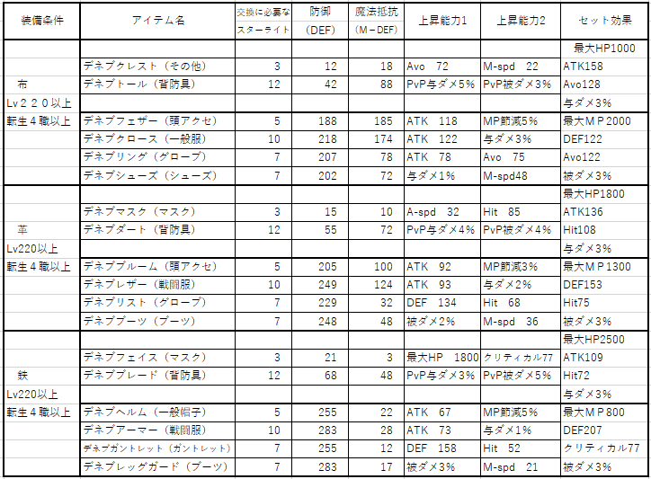 ※ 防具の情報揃いました。 情報下さった皆様ありがとうございます。