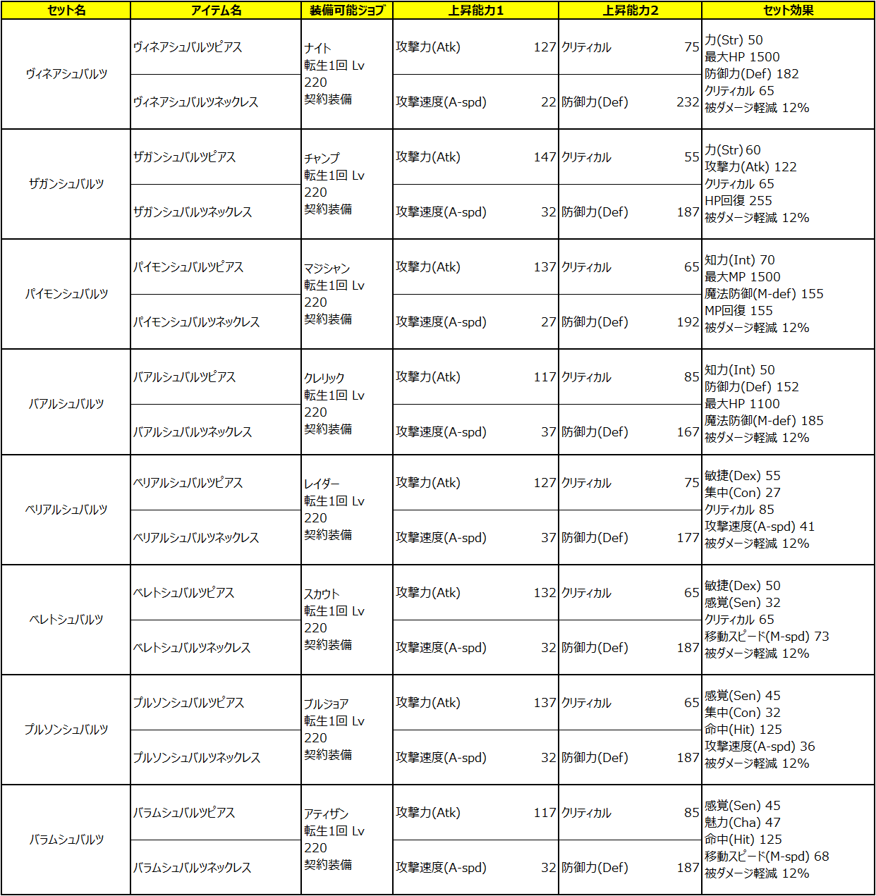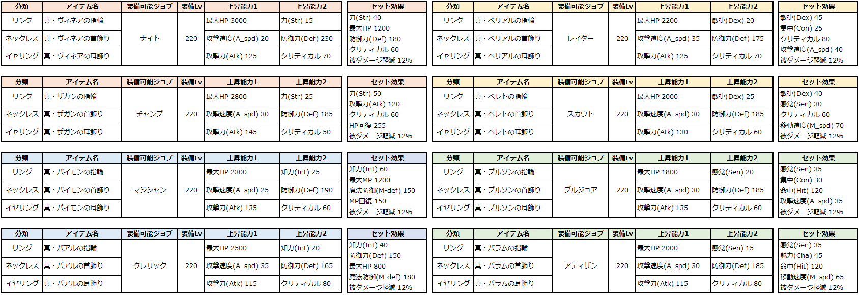 情報は不完全な部分もありますが、今後収集するべきアイテムの方向性として現段階で