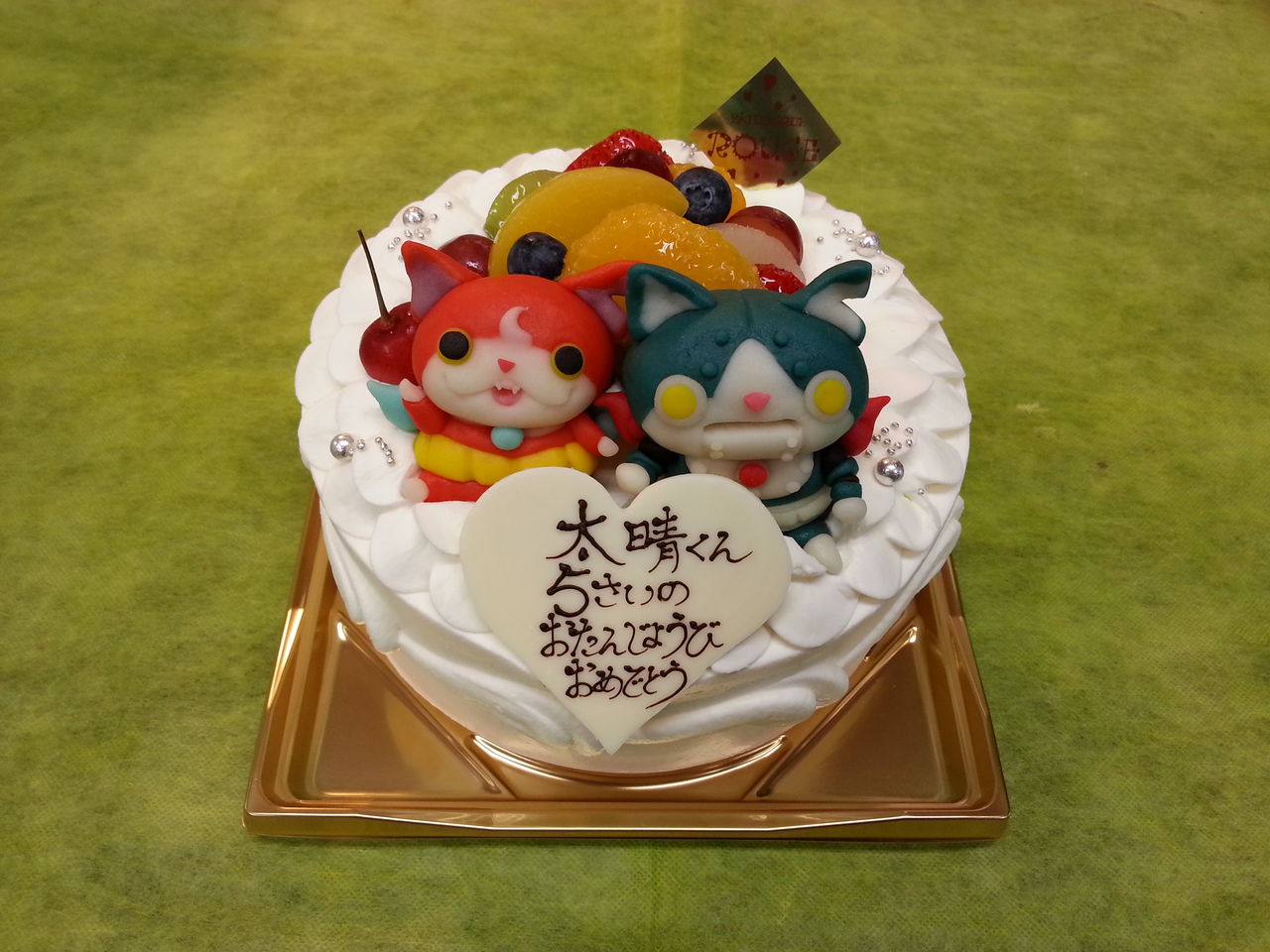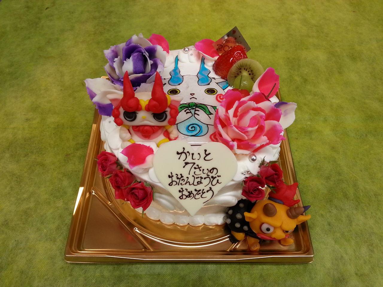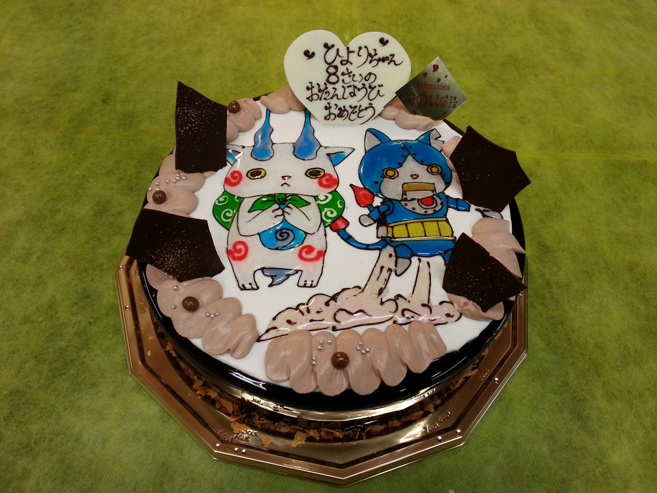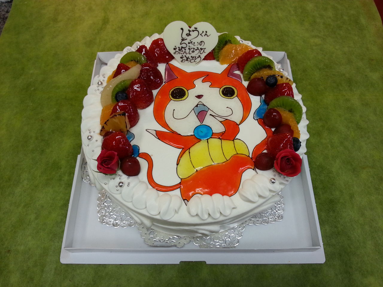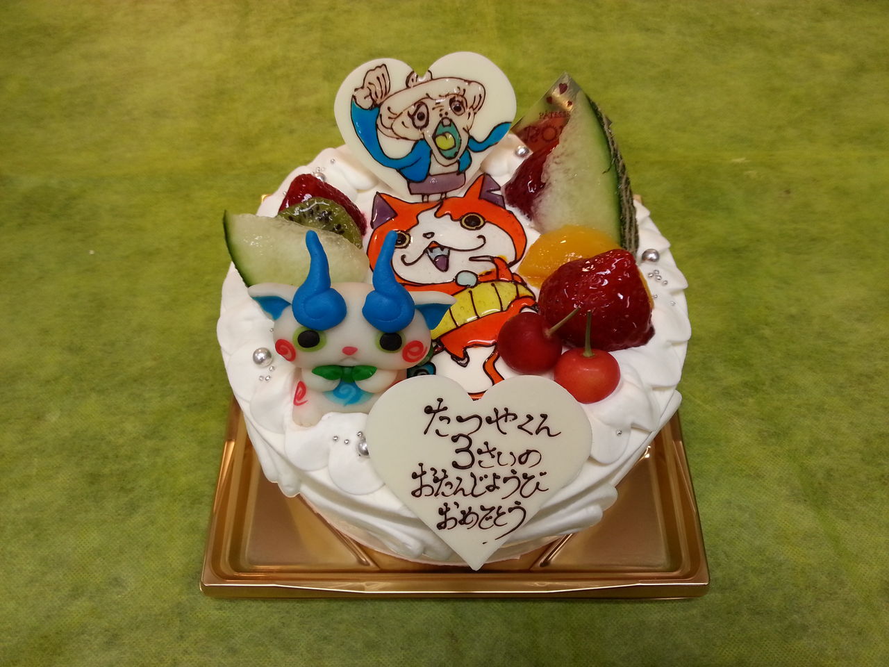 BIRTHDAYCAKE No.309 2014年07月07日 こんばんは 今日は、七夕だというのに一日中雨が降ったり止んだりでしたね台風も接近している模様日本列島横断にならなければ良いですがそれでは、本日もBIRTHDAYCAKEのご紹介です相変わらず、大人気の妖怪ウォッチいっぱい登場しますよーマジパン わんちゃん絵デコ キュアフォーチュン絵デコ アナと雪の女王とふなっしー絵デコ アナと雪の女王マジパン オラフ 絵デコ キュアハニー マジパン アンパンマンとホラーマンのチョコプレート 絵デコ ジバニャン マジパン スヌーピーとウッドストック 絵デコ シャンクス マジパン ローラースケート 絵デコ ウルトラマン 時計ケーキ 絵デコ マーライオン マジパン ヤギさん マジパン ブシニャン マジパン かくれももじり マジパン こっしーとさぼさん 立体ジバニャン マジパン ジバニャンとウィスパー 絵デコ コマジロウ 絵デコ コマさんマジパン シュラコマと初登場の山吹鬼 かいとくん喜んでくれたかなーマジパン こまさんジバニャンの絵デコ更にバクロ婆のチョコプレート絵デコ キュウビマジパン ブシニャン沢山のご予約ありがとうございましたそれでは次回もお楽しみに…
