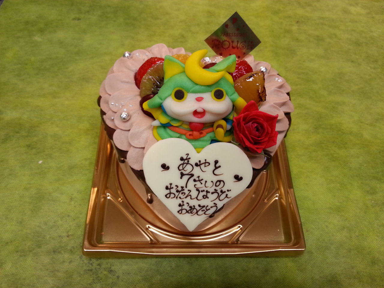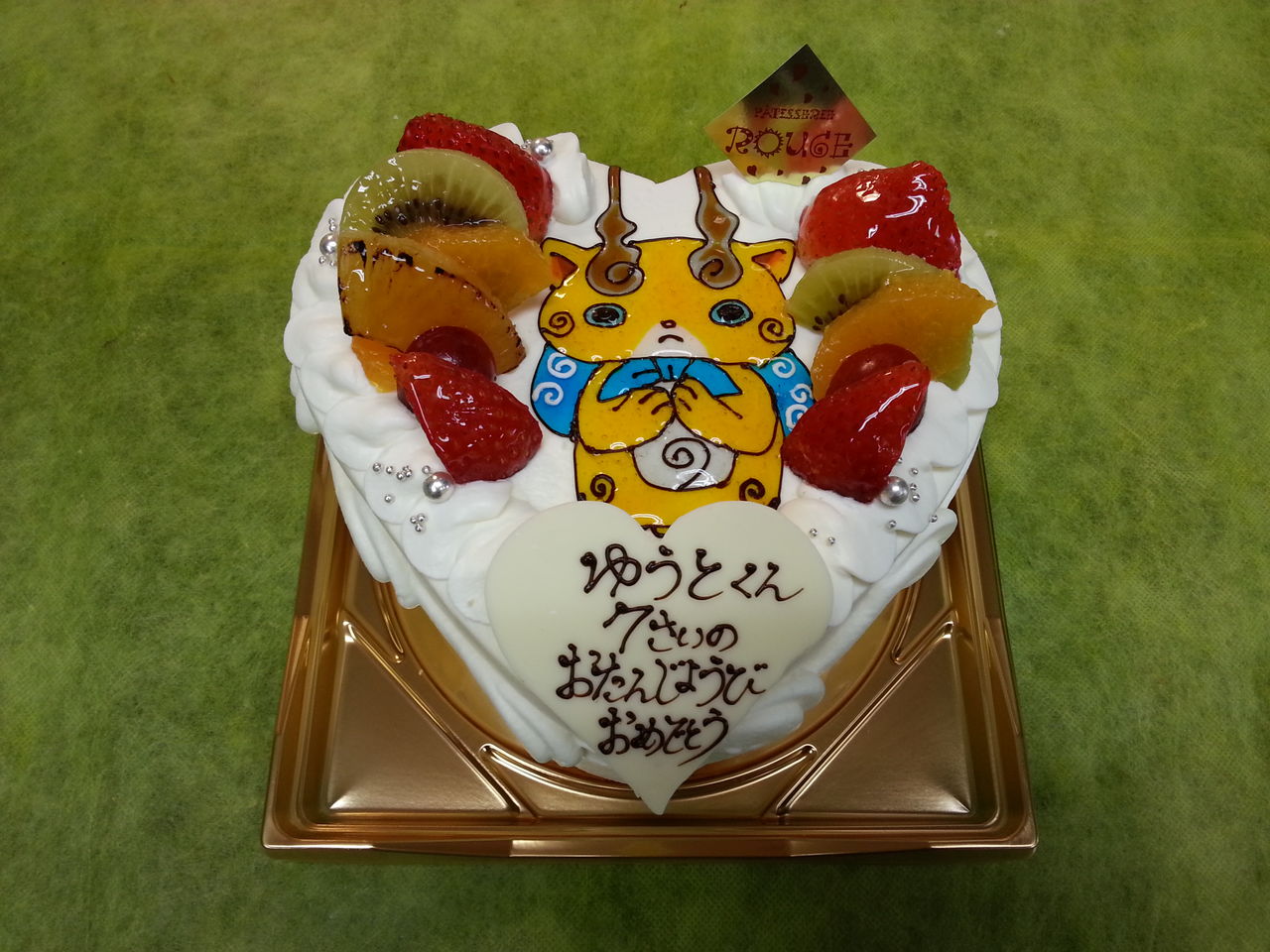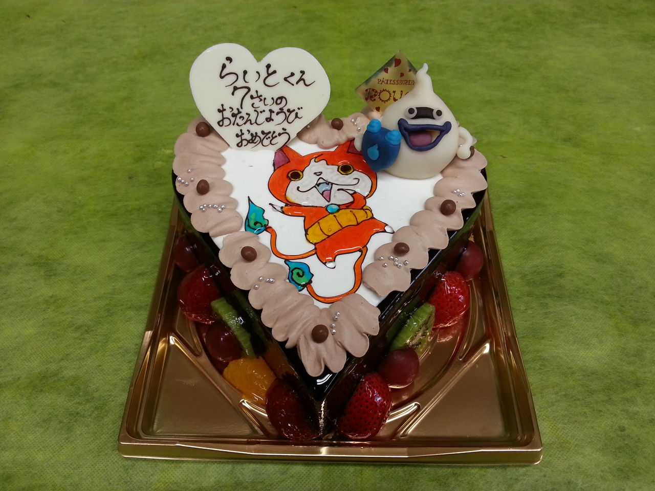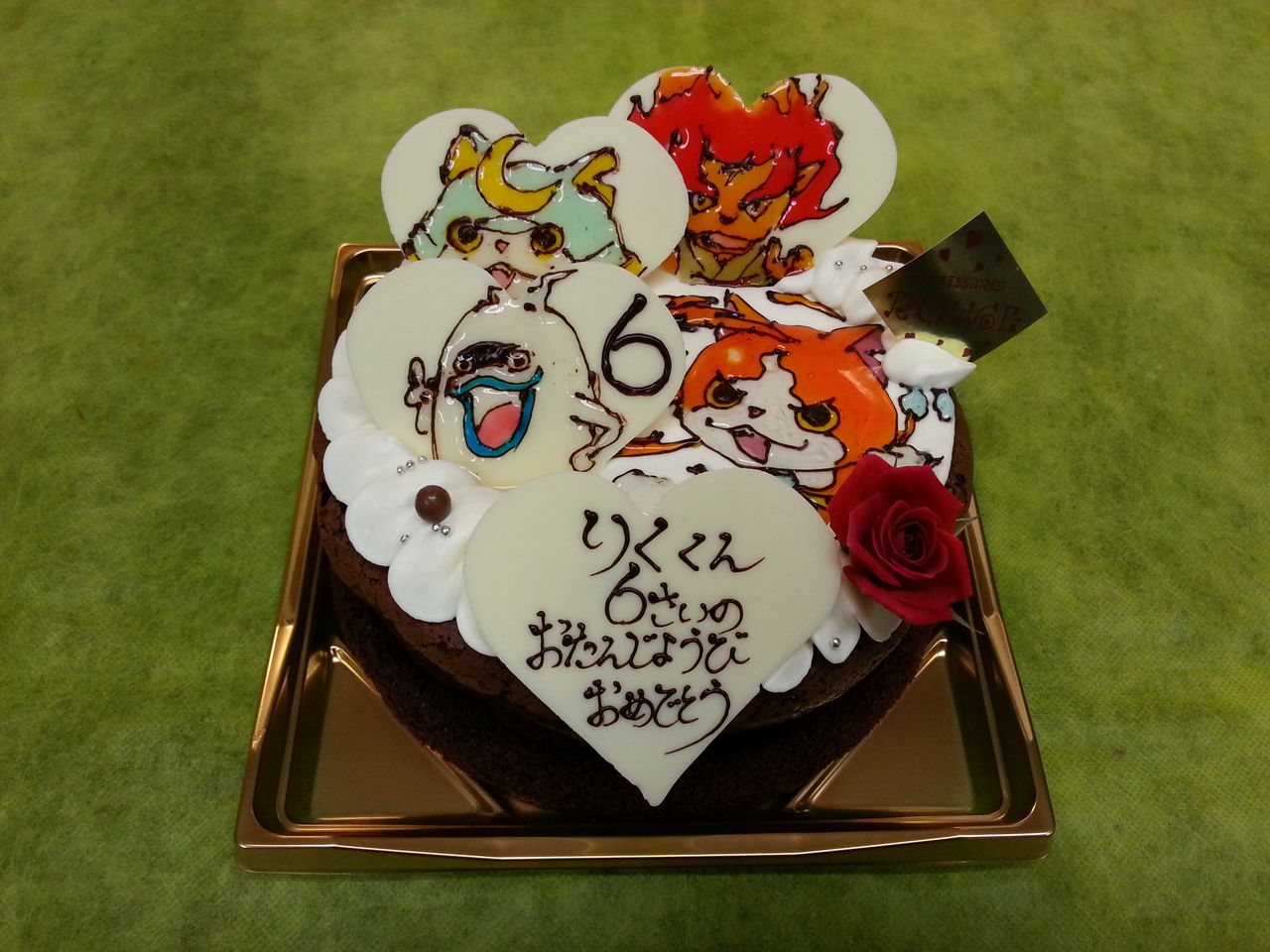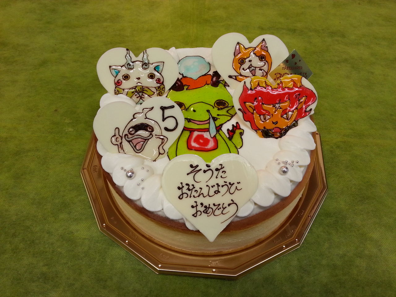 BIRTHDAYCAKE No.309 2014年07月07日 こんばんは 今日は、七夕だというのに一日中雨が降ったり止んだりでしたね台風も接近している模様日本列島横断にならなければ良いですがそれでは、本日もBIRTHDAYCAKEのご紹介です相変わらず、大人気の妖怪ウォッチいっぱい登場しますよーマジパン わんちゃん絵デコ キュアフォーチュン絵デコ アナと雪の女王とふなっしー絵デコ アナと雪の女王マジパン オラフ 絵デコ キュアハニー マジパン アンパンマンとホラーマンのチョコプレート 絵デコ ジバニャン マジパン スヌーピーとウッドストック 絵デコ シャンクス マジパン ローラースケート 絵デコ ウルトラマン 時計ケーキ 絵デコ マーライオン マジパン ヤギさん マジパン ブシニャン マジパン かくれももじり マジパン こっしーとさぼさん 立体ジバニャン マジパン ジバニャンとウィスパー 絵デコ コマジロウ 絵デコ コマさんマジパン シュラコマと初登場の山吹鬼 かいとくん喜んでくれたかなーマジパン こまさんジバニャンの絵デコ更にバクロ婆のチョコプレート絵デコ キュウビマジパン ブシニャン沢山のご予約ありがとうございましたそれでは次回もお楽しみに…