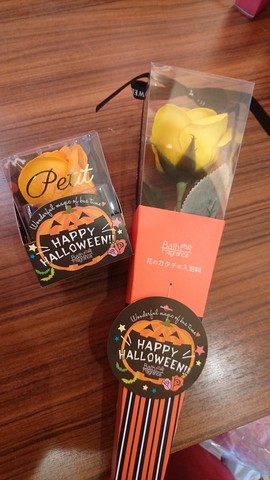 バスフレグランス 2017年10月28日 こんばんは!台風の影響か雨が降り続いていますね(´・ω・`)気温も下がりそろそろコタツの出番かなとわくわくしてますただいまハロウィン仕様のバスフレグランスをご用意しております!可愛らしいお花が入浴剤となっております冷えた体はお風呂で温まりましょう!本日のケーキです!ステキな1年になりますように!