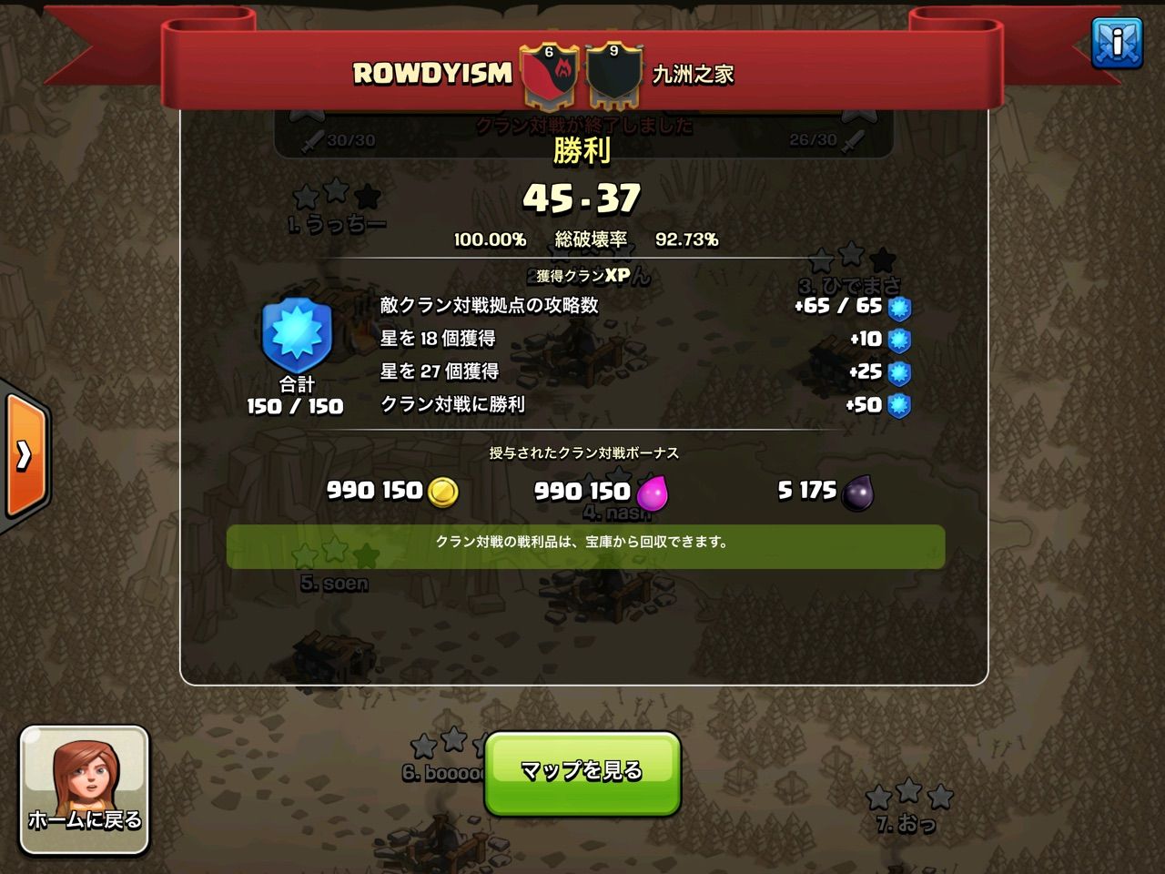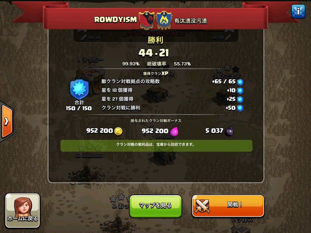 早々に僕も相手のTH11を全壊出来たのですが、それをパーフェクトに持って行ってくれたのはメンバーの方々の実力でございます。