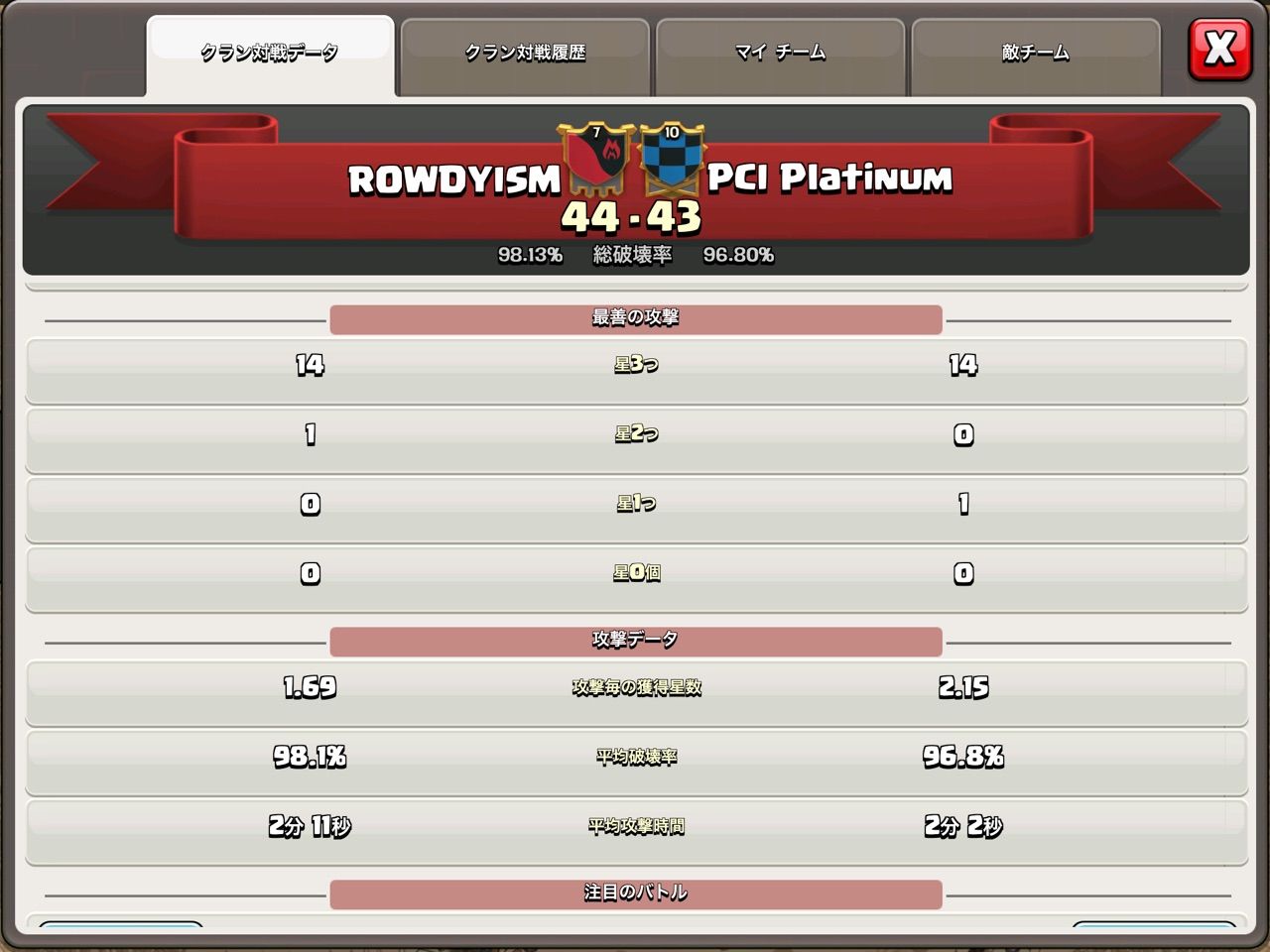 見事170勝しているクランレベル10に勝利しやした(๑•̀ㅂ•́)و✧
