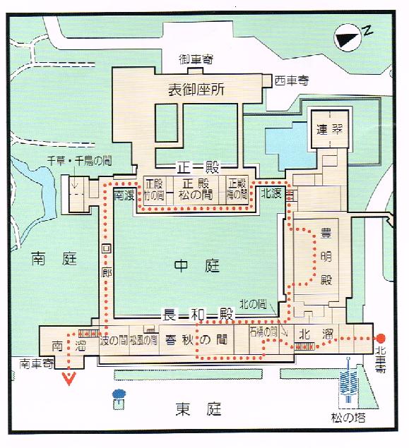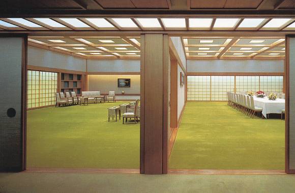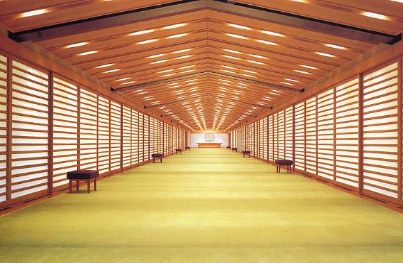 天皇陛下が公的な事務をお執りになる所で,附属して侍従等の控室があります。