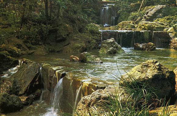 石橋の間は,広さ245平方メートル(約74坪)で,熊本県産市房杉や宮崎県産日向松などが使われています。部屋の中央壁面には,前田青邨作の「石橋」・「白牡丹」・「紅牡丹」が掛けられています。