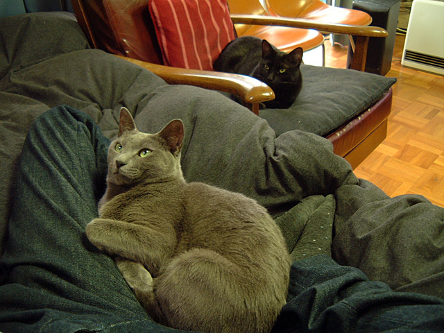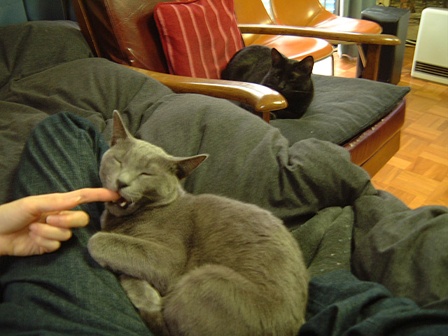 噛み噛みで甘えるジャズを遠くから睨む、ブルーズ。