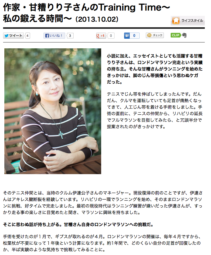 作家・甘糟りり子さんのTraining Time~私の鍛える時間~