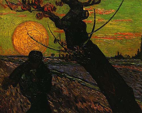 ゴッホが描く「種をまく人」は、人物の頭の部分が背景の太陽と重なり、聖者の後輪を暗喩しているようです。