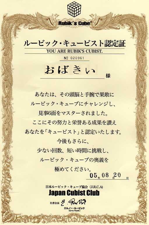 どうでもいいけど「ルービック・キュービスト認定書」係に送って、来るのは「認定証」って違和感ない?
