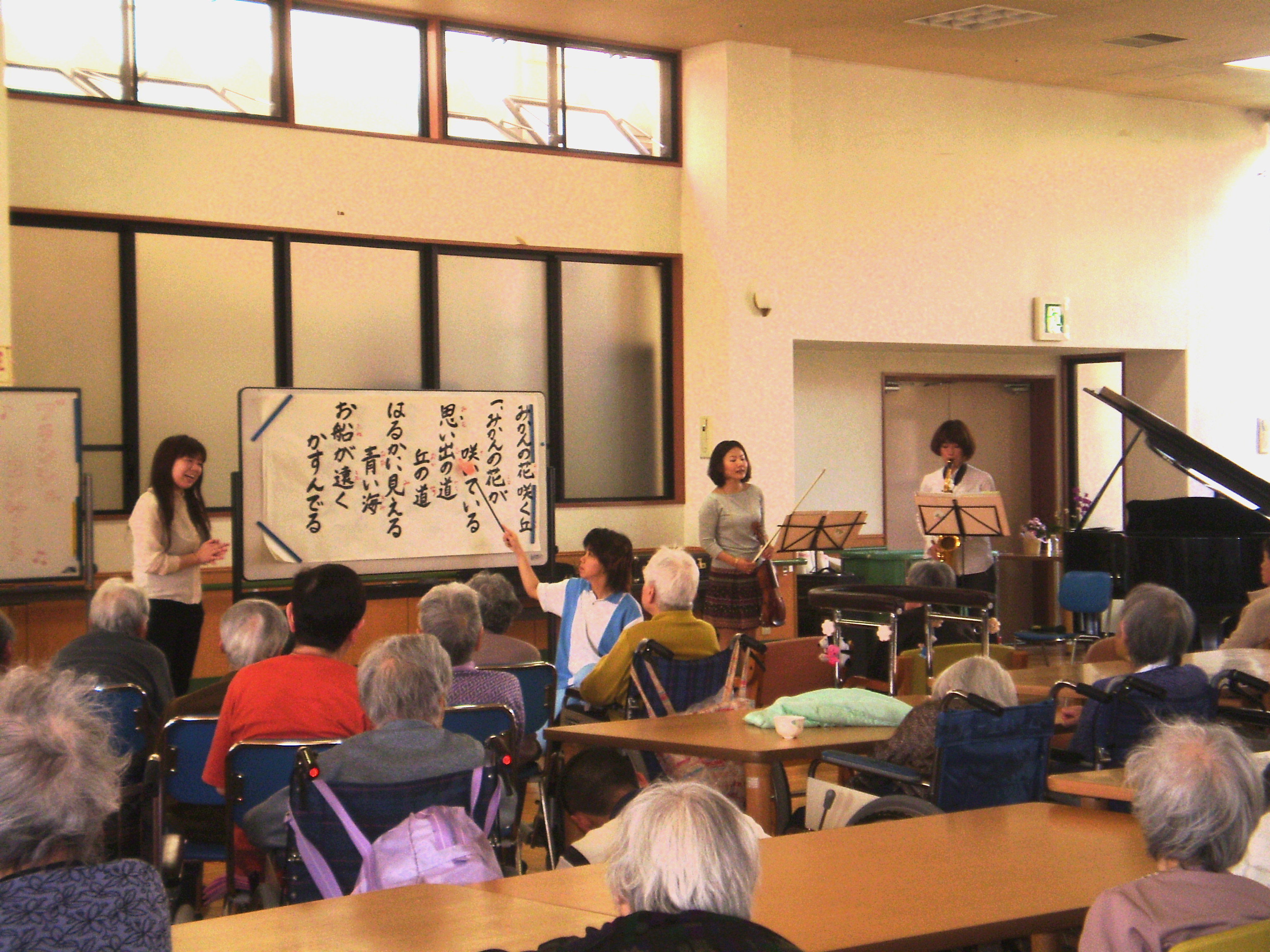 歌詞を前に用意し、皆さんも演奏に合わせて歌いました