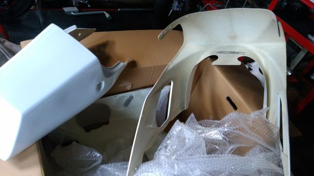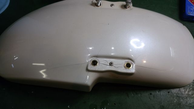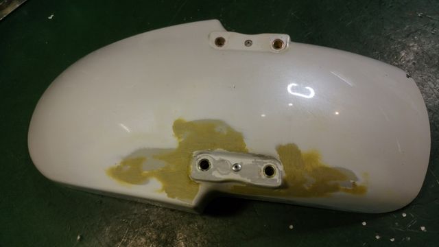 その後、クレバーウルフ社製 FRPカウルの加工と純正フロントフェンダーのひび割れ修理を完了して