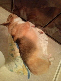 2枚目。お風呂から出ると元気100倍!ですが「ドライヤー嫌々ここから出せ攻撃」も無視され、おとなしくドライヤーされてる図。