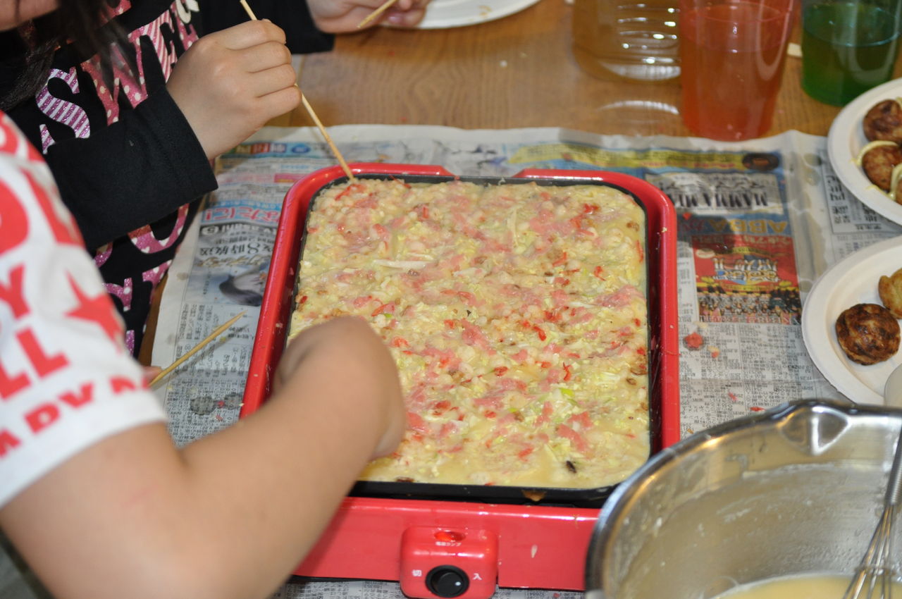 子供達のたこ焼き作りをジーッと見ていて、出来あがる頃に、